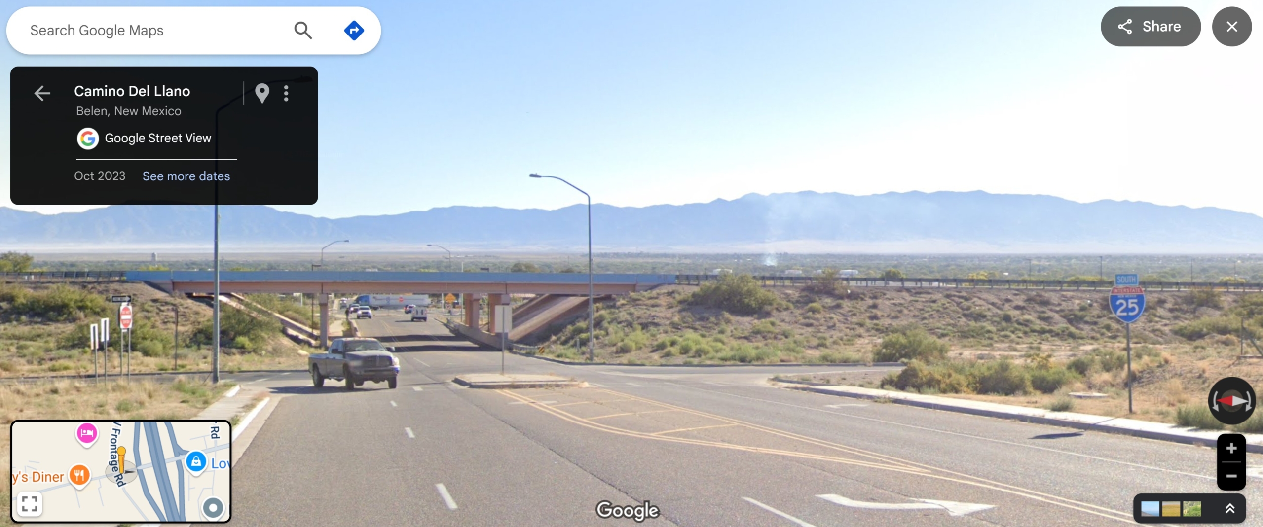 I-25 South <- or under the I-25 bridge and left I-25 North to Albuquerque